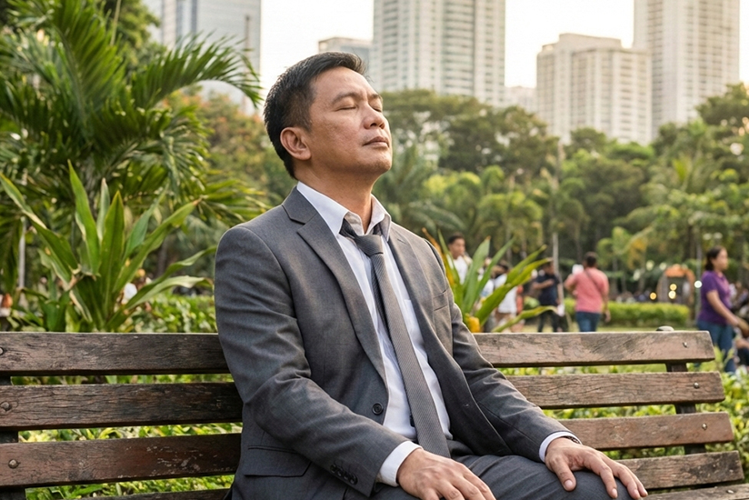 Try this 4-7-8 method: Inhale through your nose for 4 seconds, hold your breath for 7 seconds, then exhale slowly through your mouth for 8 seconds. Repeat for 3–5 cycles. It only takes two minutes, yet the effect is surprisingly powerful.