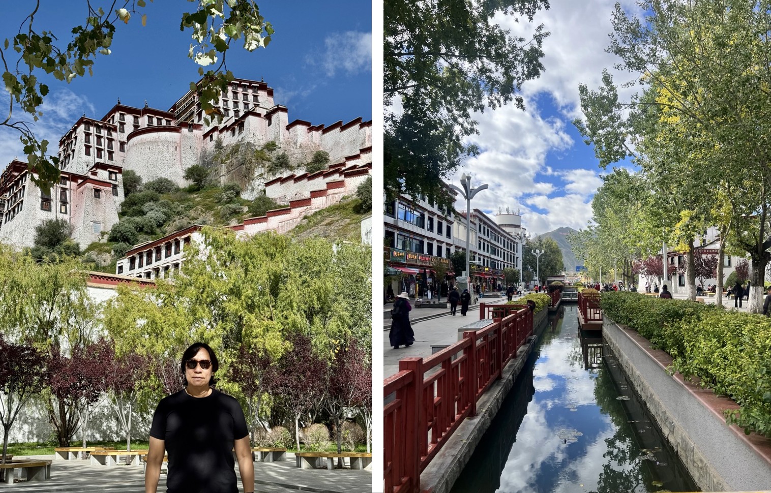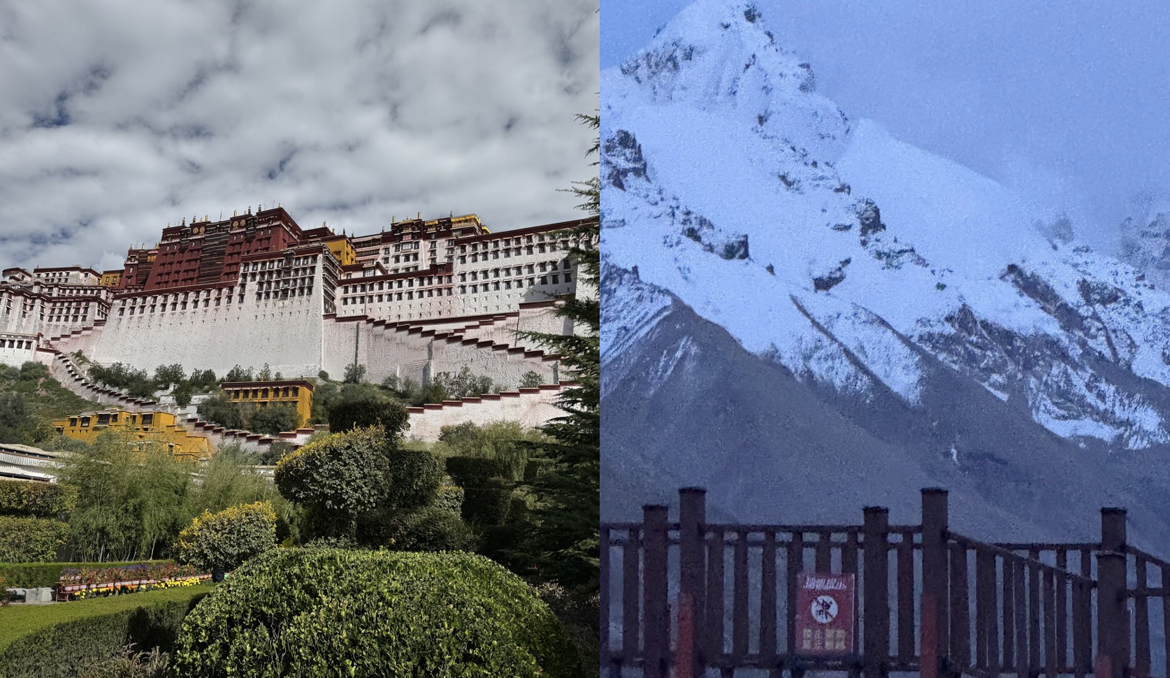 (L) The 1200-year-old Potala Palace in Lhasa, capital of Tibet. (R) Mt Everest from the base camp, taken late afternoon Sept 24, 2025