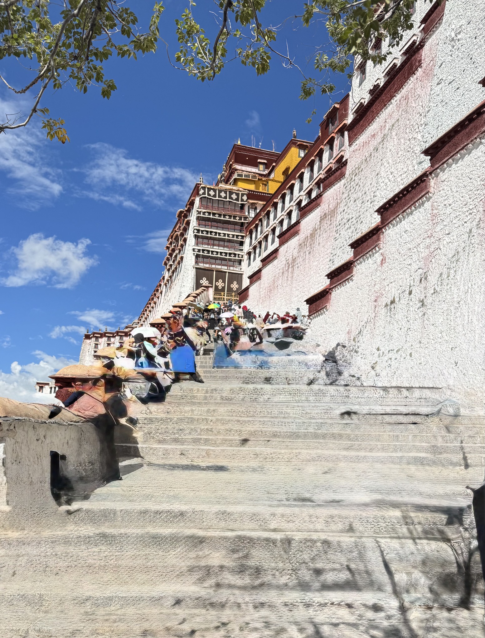 The imposing Potala Palace, 1200 years old, was a challenge to ascend, given our short acclimatization time. The palace was where the 5th up to the 14th Dalai Lama resided. The 14th Dala Lama ( the current one) fled Tibet during the Cultural Revolution in the 1950s and now resides in Dharmasala, India.