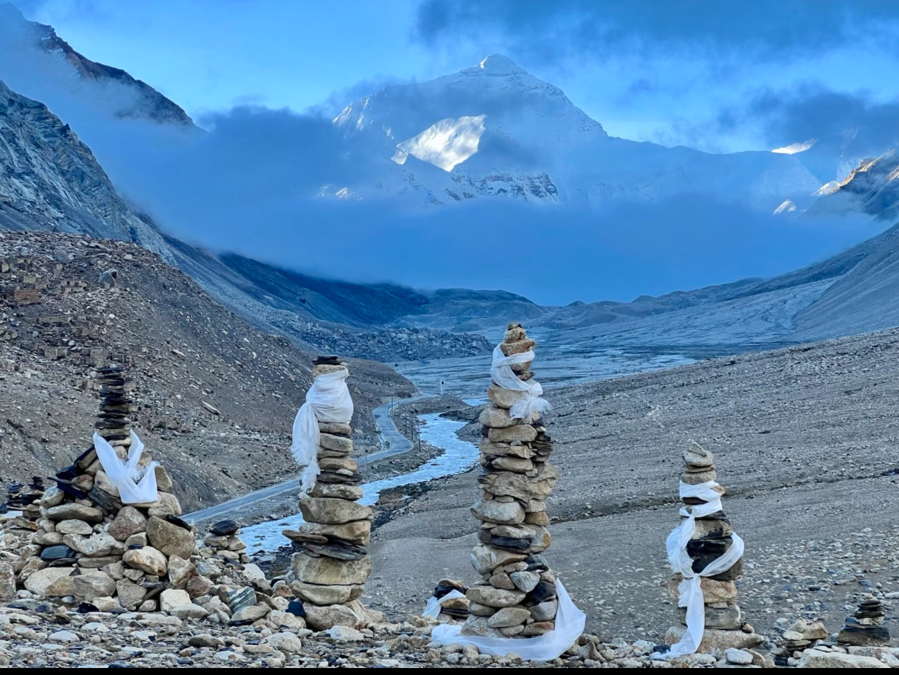 Now, standing so small at the foot of Mt. Everest on Day 4 of our trip to Tibet, I could hear my long and deep breaths dissolve into the stillness of the moment, lifting me into the inseparable spaciousness of experience.