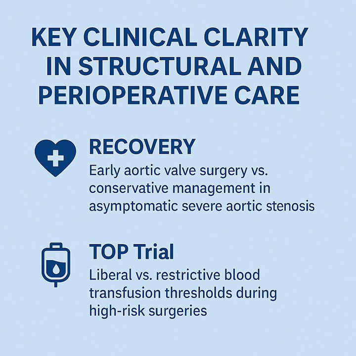 The RECOVERY trial tackled the debate over the optimal timing of surgery for asymptomatic severe aortic stenosis (AS). The final outcomes of the trial, comparing early surgery versus a conservative medical management approach (monitoring until symptoms develop), will inform current practice guidelines. While the final details are under embargo pending peer-reviewed publication, anticipation was high that the data will clarify if preemptive intervention offers a survival or complication advantage, particularly for patients with a low surgical risk.