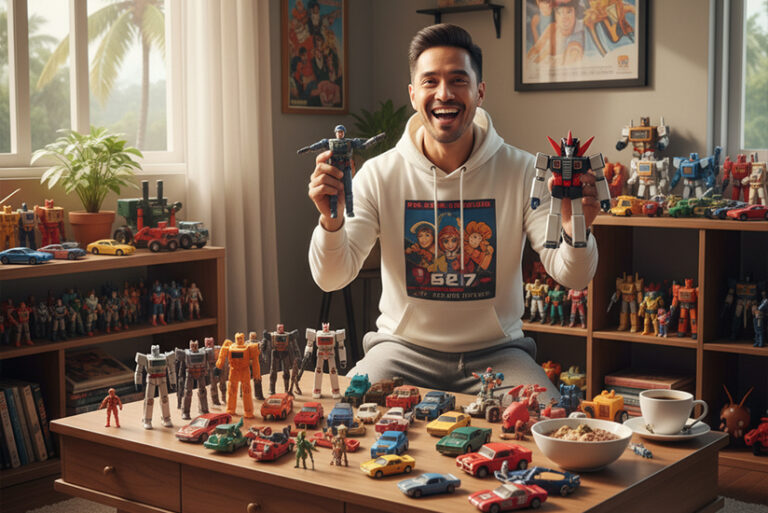 By deliberately collecting toys now, I am sending a clear message back through time to that little kid: Your