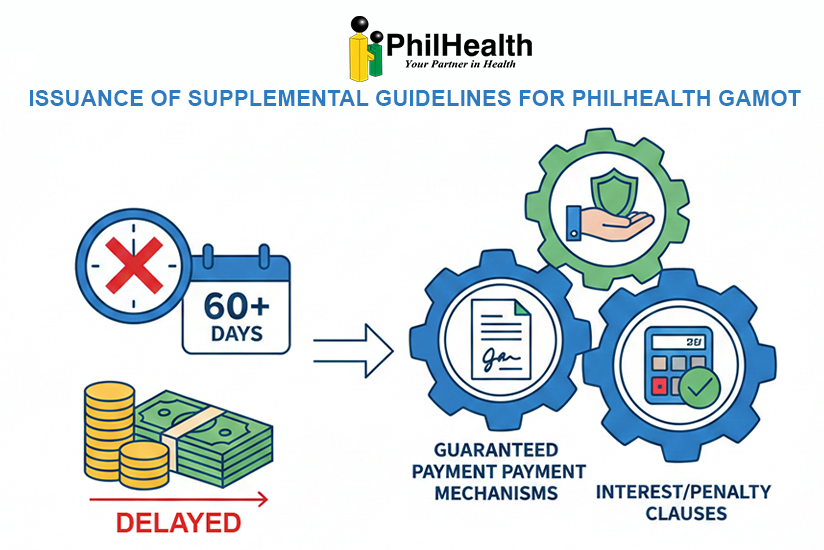 • Issuance of supplemental guidelines for PhilHealth GAMOT, clarifying safeguards when reimbursements are delayed beyond 60 days.