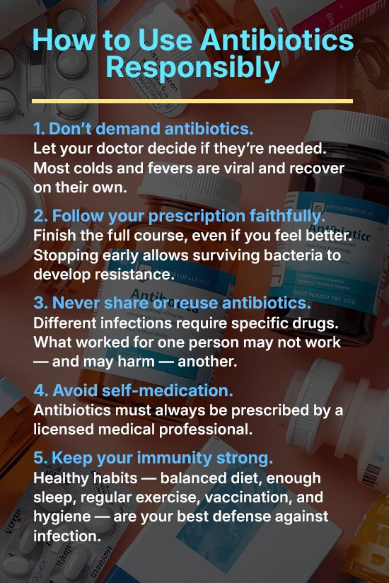 The good news is that antibiotic resistance is preventable. Each of us — doctors, patients, policymakers, and communities — has a role to play.
