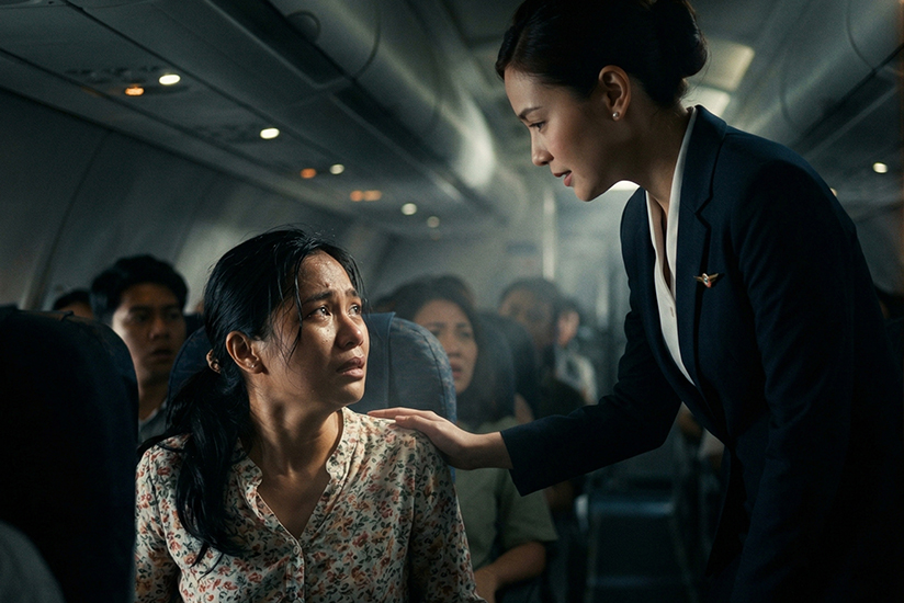 A woman traveling on a flight from Manila to Los Angeles became extremely distressed and frightened when the aircraft encountered severe turbulence midway through the journey. “Are we going to crash?” she inquired of the stewardess.