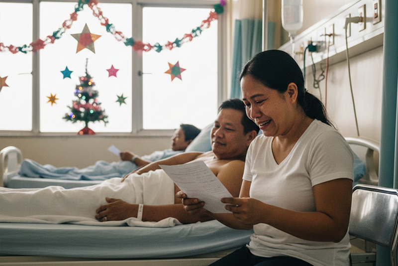 On Christmas Eve, while carols echoed from hospital hallways, Rosa* sat quietly beside her husband’s bed in a public ward. He had been admitted days earlier for severe pneumonia. PhilHealth helped—but not enough. The bill kept growing as the days passed, and every nurse’s visit reminded her of what they could not afford.