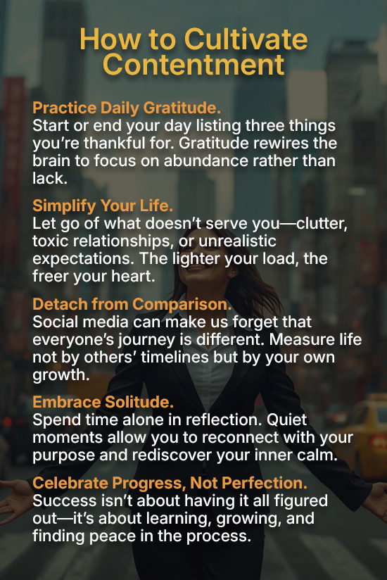 Contentment doesn’t mean we stop dreaming; it simply means we no longer depend on achievement for our worth. We can still aim high, but with gentleness—knowing that our value isn’t defined by a title, paycheck, or approval.